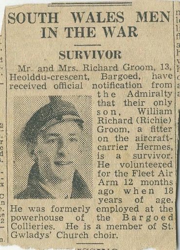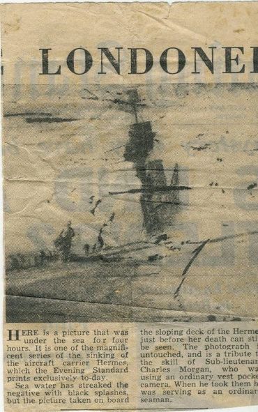 307 men lost their lives in the sinking of Hermes. Richard never spoke much of his experience on Hermes, it was only in the last few years of his life he went into detail. He then went on to do 25 years service in the Royal Navy spending long periods on HMS Ark Royal and finally retiring from the RN as a lieutenant.