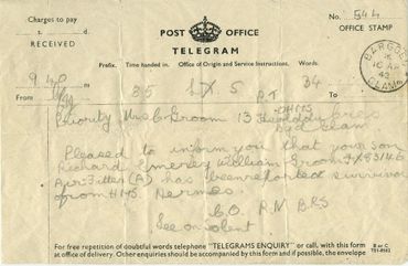 Family stories tell us that Richard saw his brother in law (Stan) looking rather smart and dapper in his Royal Navy uniform, and so decided that's what he wanted. He entered service with the Royal Navy Fleet Arm and was sent to Scotland for training, from Scotland he was posted to the aircraft carrier HMS Hermes.